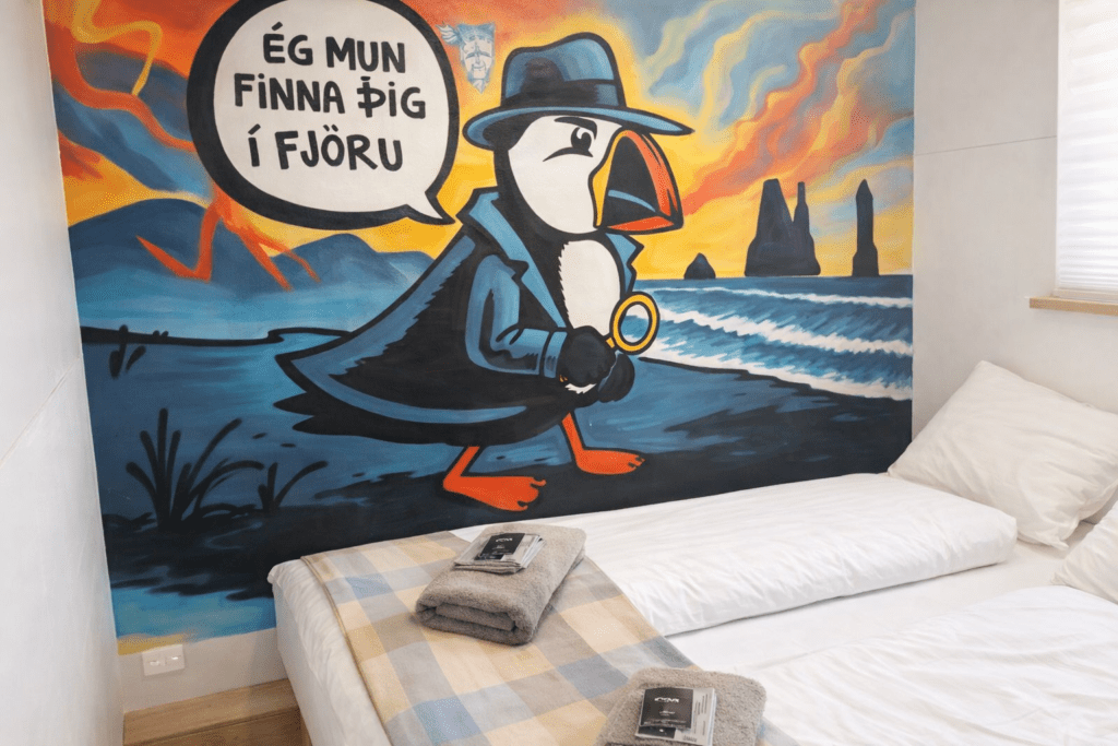 Stykkishu00f3lmur Inn features distinctive room artwork (full-wall murals) as part of the propertyu2019s character.