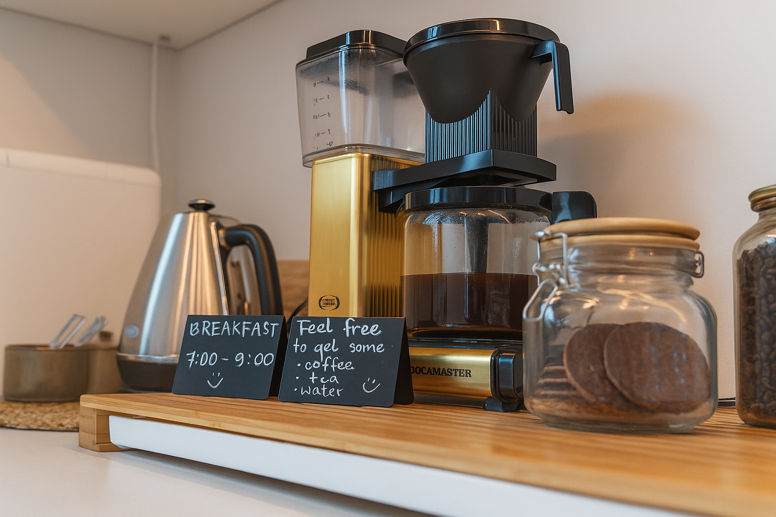 - Amenities: Baggage Storage, Bathroom essentials, Breakfast Included, Car Parking, Check In/Out Self, Cleaning Included, Coffee, tea and water in dining hall, Countryside View, Fire Extinguisher, First Aid Kit, Free parking, Hair dryer, Hotel Linen, In Room Heat, Lines, Lounge, Non Smoking Rooms, Pets Not Allowed, Smart locks, Smoke Detector, Towels, WiFi